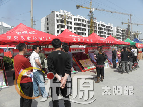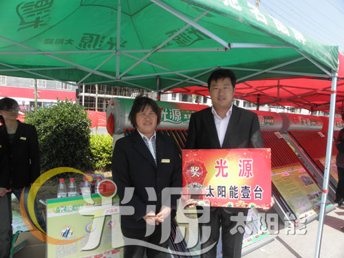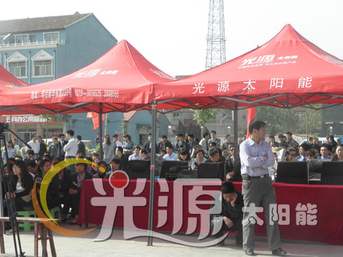廣場的一側,光源銀月亮、浴美人系列太陽能列隊排開,漂亮的機型,明碼標價的質優價廉產品,吸引了廣大老百姓駐足凝神觀看!實實在在的優惠政策,在加上工作人員耐心細致的講解,廣大老百姓紛紛踴躍定機!
