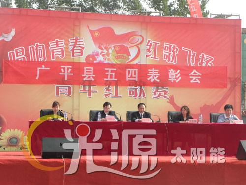 2011年5月4日,值此五四青年節到來之際,由邯鄲市廣平縣政府主辦,光源太陽能贊助的“光源杯”青年紅歌賽在廣平縣文化廣場隆重舉行!