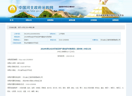 中標2019年邢臺經濟開發區燃氣壁掛爐采購項目(留村鎮)!