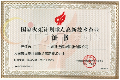 國家火炬計劃重點高新技術企業證書